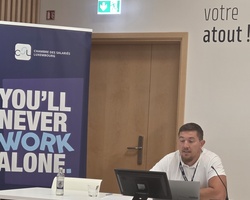 Adam Šumichrast presented a study on social security for flexible workers at the IREC 2025 conference in Luxembourg