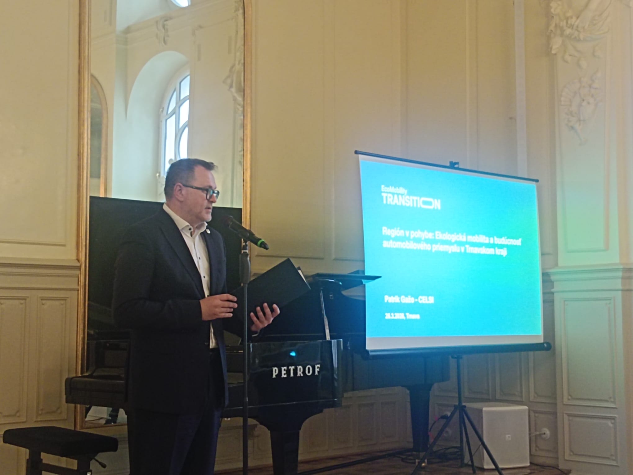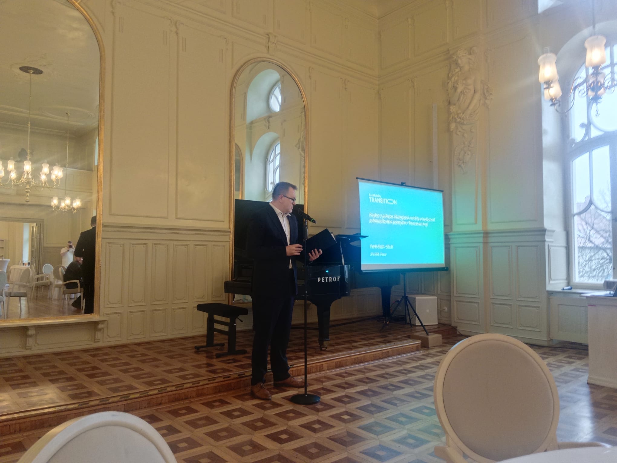 Participants were introduced to key research findings presented by CELSI researcher Patrik Gažo, focusing on changes in production, employment, and mobility patterns, as well as on the role of social dialogue and stakeholder coordination in managing the transition.