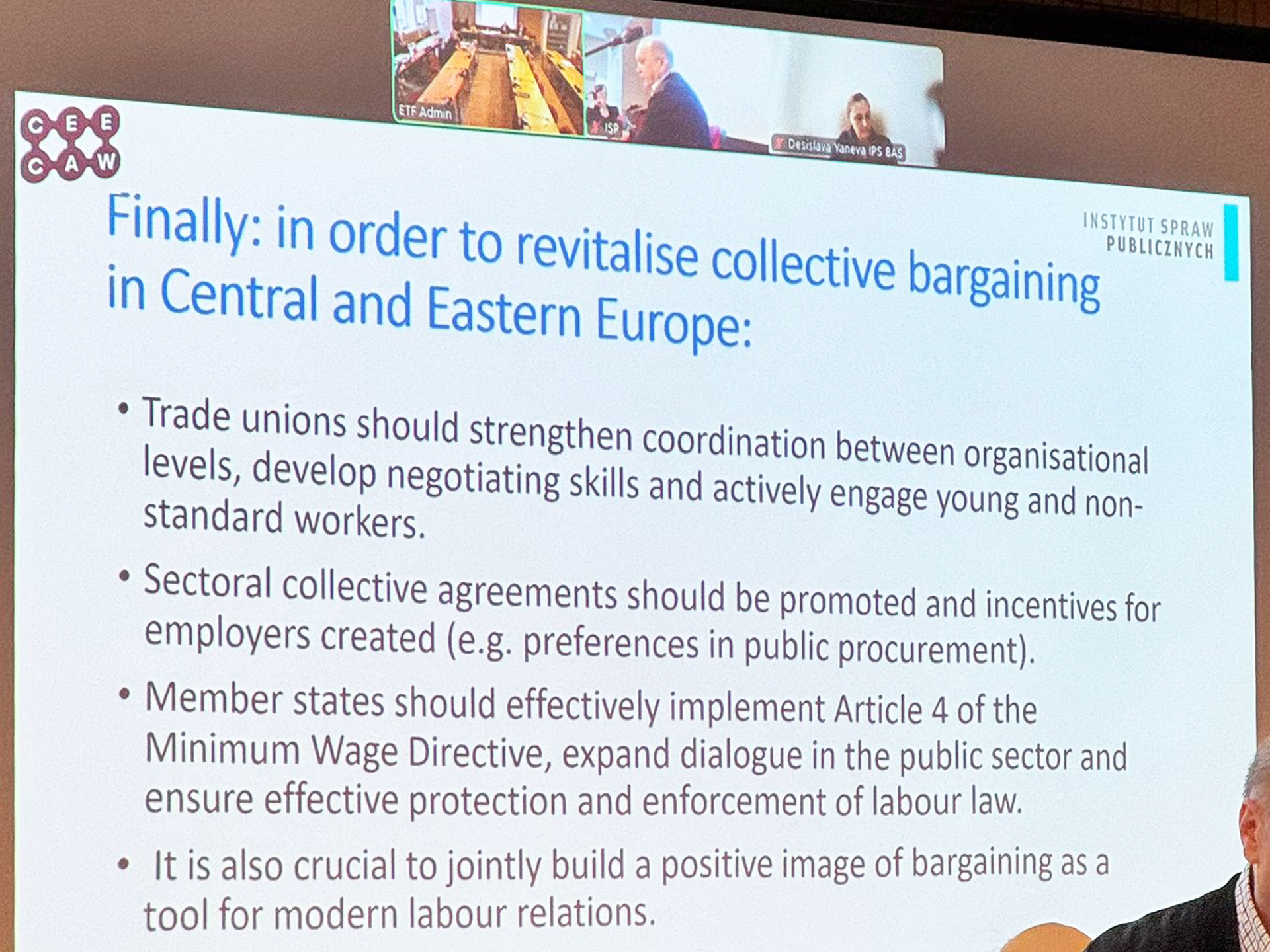 Podujatie, vedené našimi partnermi z Institute of Public Affairs (IPA, Poľsko), bolo venované diskusii o budúcnosti kolektívneho vyjednávania a primeraných minimálnych miezd v krajinách strednej a východnej Európy.