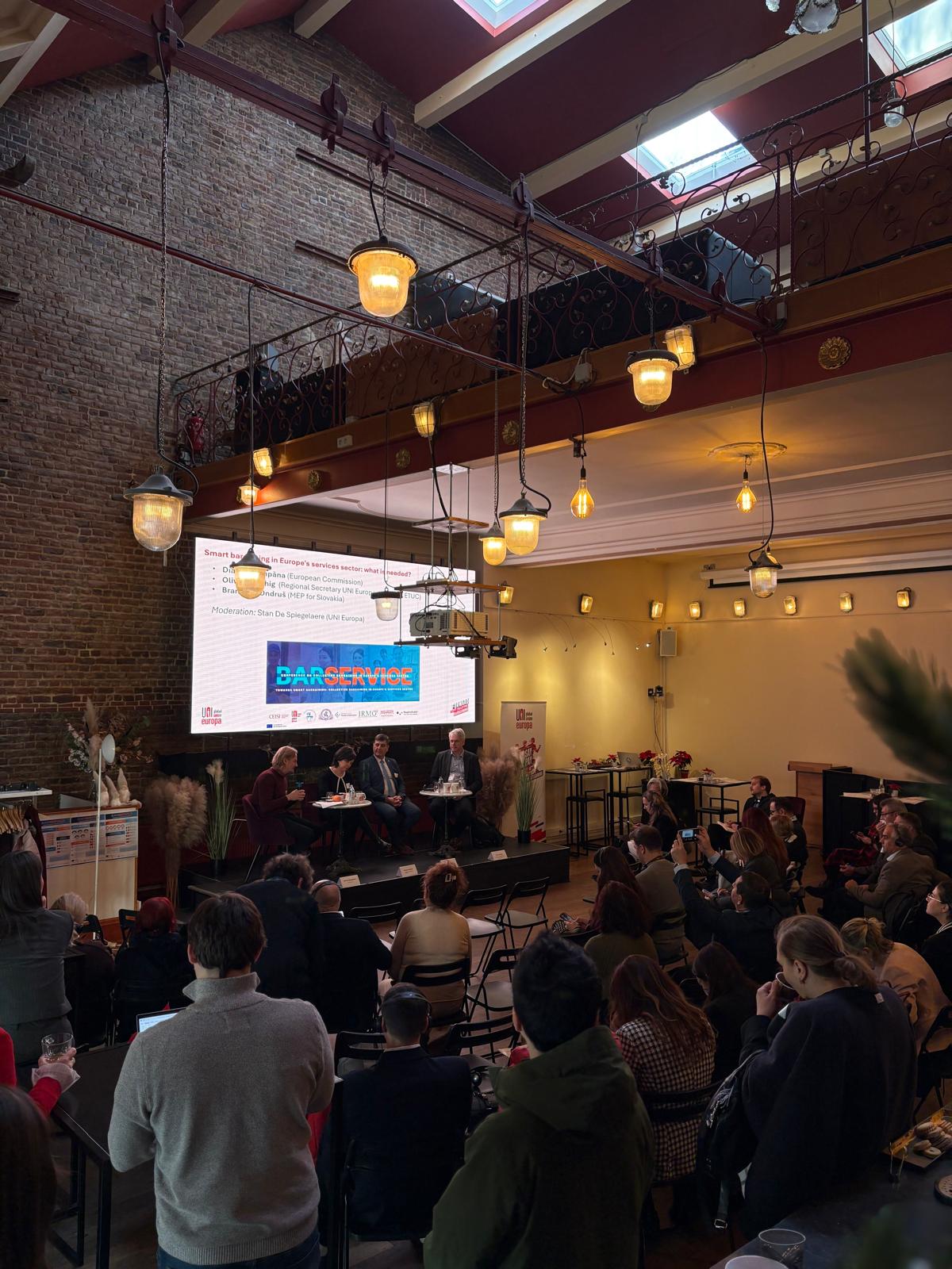 Vo štvrtok 4. decembra 2025 sa v priestore Atelier29 v Bruseli stretli zástupcovia odborov, zamestnávateľov, tvorcov politík a výskumníkov z celej Európy na záverečnej konferencii projektu BARSERVICE „Towards Smart Bargaining in Europe’s Services Sectors“.