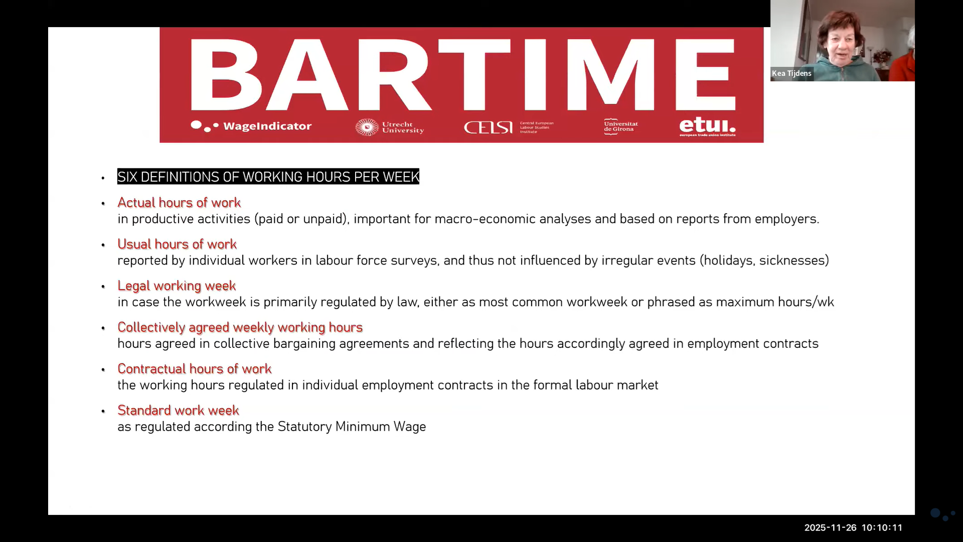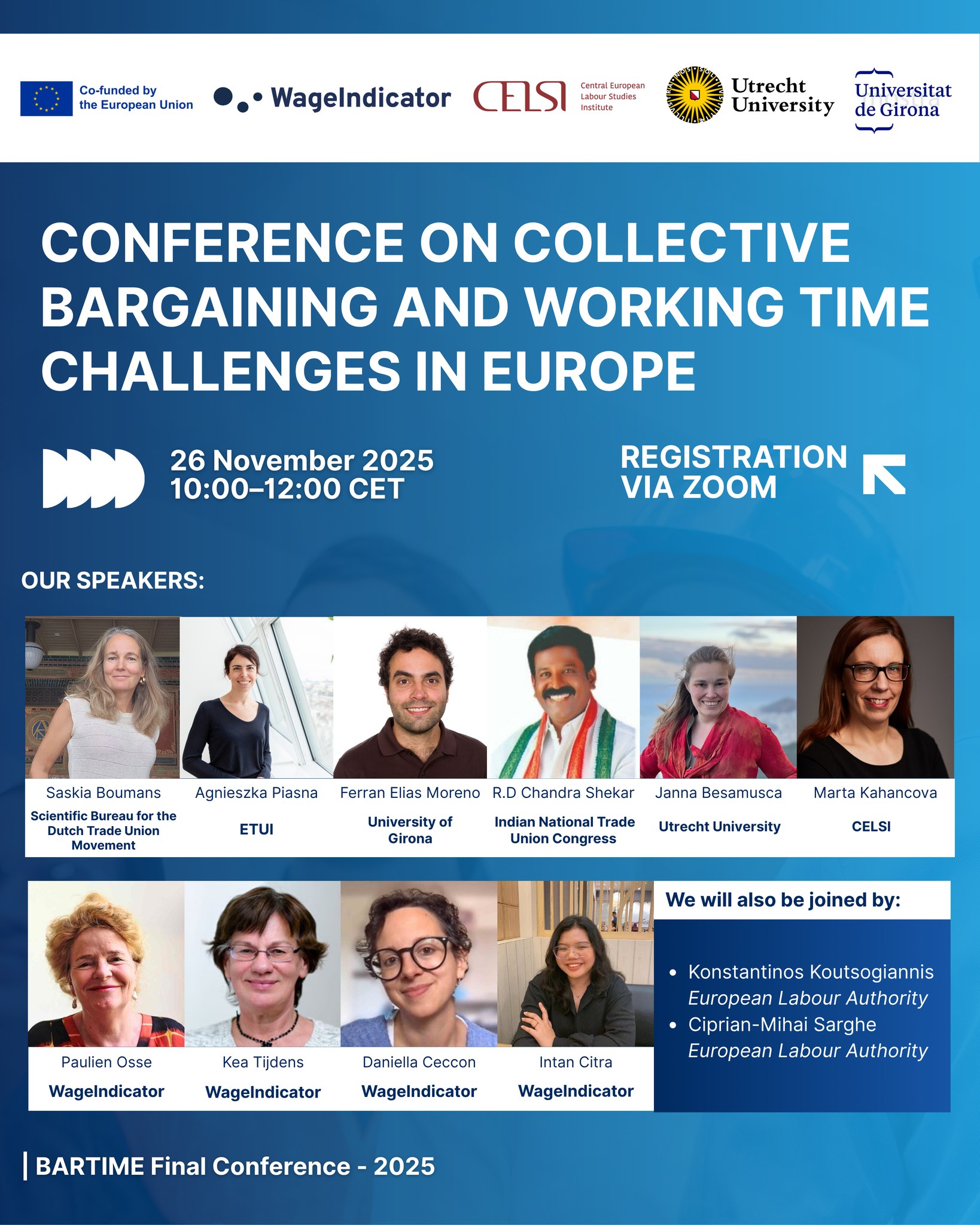 Dňa 26. novembra 2025 sa odborníci z celej Európy stretli online na záverečnej konferencii BARTIME, aby diskutovali o tom, ako kolektívne vyjednávanie a politické inovácie formujú budúcnosť pracovného času.