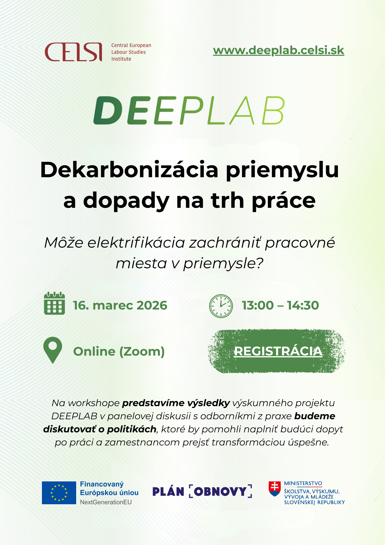 #DEEPLAB #Dekarbonizacia #Priemysel #Zamestnanost #SpravodlivaTransformacia #PracovnyTrh #CELSI