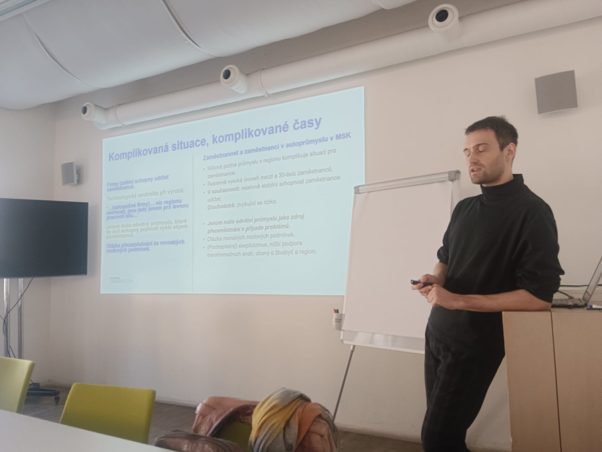 Na akci vystoupil výzkumník CELSI Jakub Barszcz, který představil hlavní zjištění výzkumu o transformaci automobilového průmyslu v regionu, včetně vývoje na úrovni EU, národních i regionálních politik.