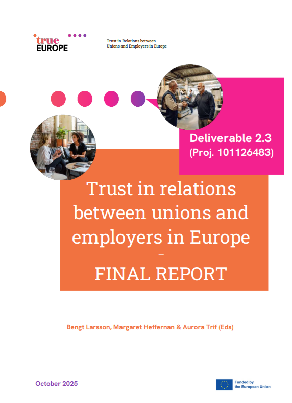After two years of collaborative research, fieldwork, and dialogue with social partners across eight countries, the TRUE Europe project has released its Final Comparative Report, edited by Bengt Larsson, Margaret Heffernan & Aurora Trif - the most comprehensive cross-country analysis to date on how trust operates within European industrial relations.