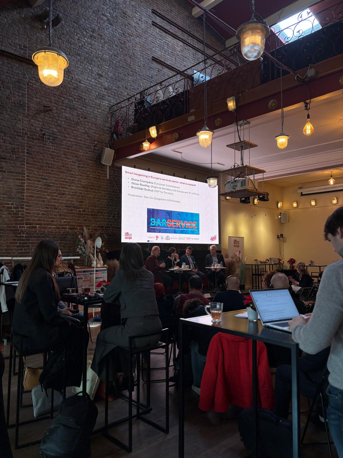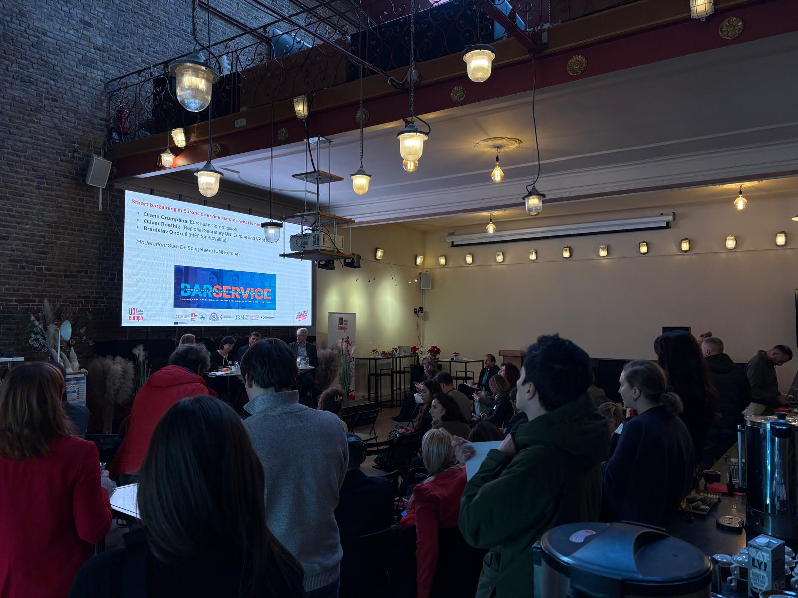 Vo štvrtok 4. decembra 2025 sa v priestore Atelier29 v Bruseli stretli zástupcovia odborov, zamestnávateľov, tvorcov politík a výskumníkov z celej Európy na záverečnej konferencii projektu BARSERVICE „Towards Smart Bargaining in Europe’s Services Sectors“.
