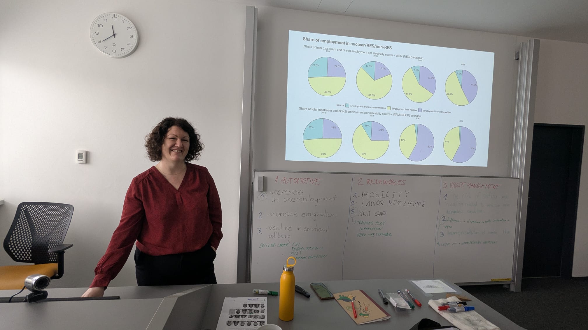 Prednáška sa konala v rámci kurzu o ekonómii práce a politike trhu práce. Martišková sa venovala väzbám medzi zmenou klímy a jej dopadmi na pracovníkov a pracovné podmienky, a tiež tomu, ako dekarbonizačné politiky premieňajú odvetvia a ovplyvňujú dopyt po práci.