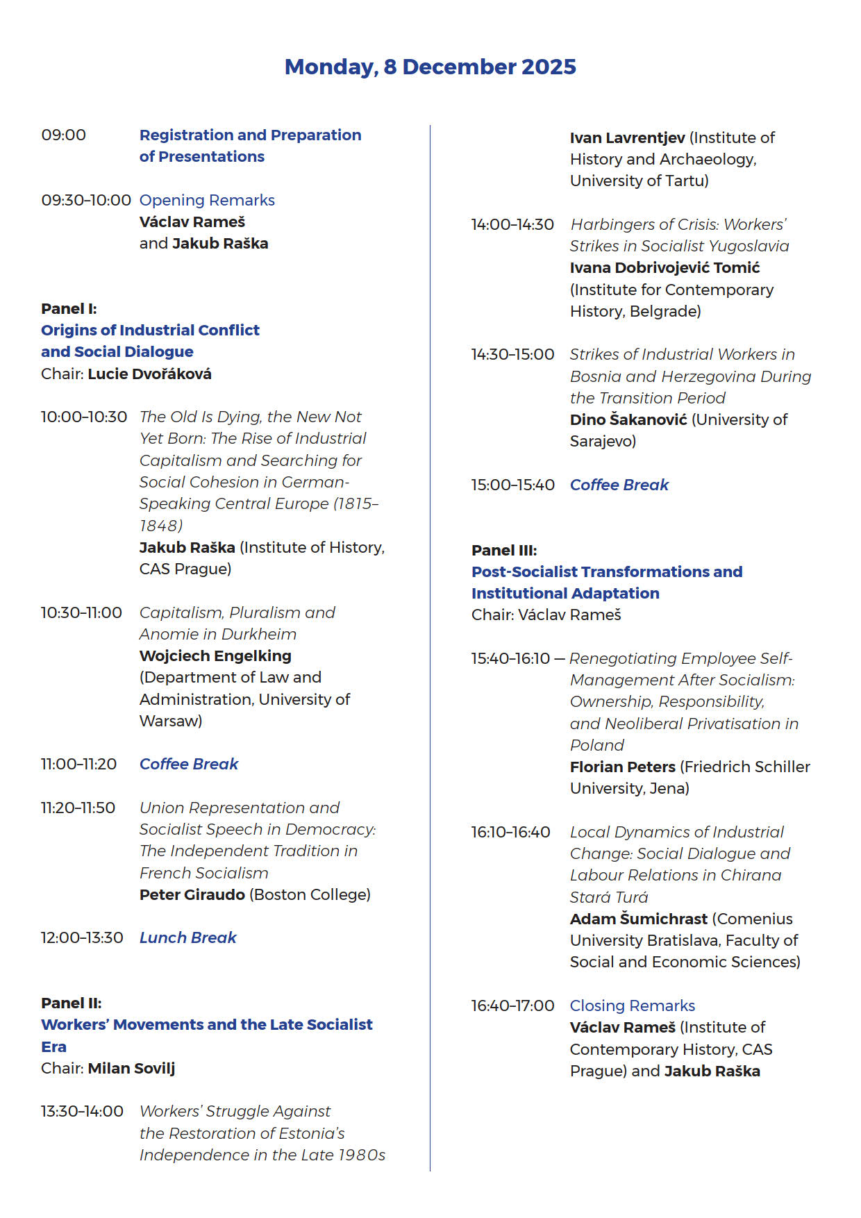 Konferencia spojila historikov a spoločenských vedcov, ktorí skúmali vývoj priemyselných konfliktov, mobilizácie pracujúcich a inštitucionálnej odolnosti od 19. storočia až po postsocialistické obdobie, so zvláštnym dôrazom na strednú a východnú Európu.